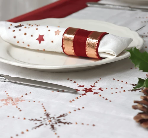 In dit makkelijke stappenplan laat Marloes van StudioZACHT (@studiozacht op Instagram) je zien hoe je een leuk design aan een wit tafelkleed en servetten kunt toevoegen om je tafel prachtig winters te dekken voor de feestdagen!